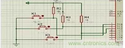 當按1次K3進入鬧鐘設置界面,時鐘繼續進行走時,按K2對秒進行設置;當按2次K3,按K2對分進行設置;當按3次K3,按K2對秒進行設置;當按下4次K3時,鬧鐘設置完畢進入時鐘顯示界面。電路圖如下: