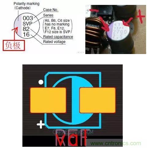 對于貼片的電解電容和固態電容,有黑色標志處為負極。