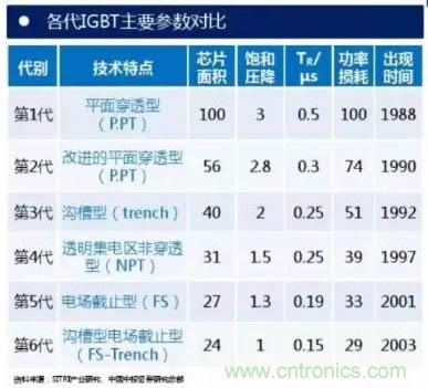1985年前后美國GE成功試制工業樣品(可惜后來放棄)。自此以后, IGBT主要經歷了6代技術及工藝改進。
