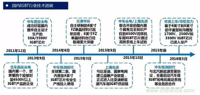 總的來說,在技術差距方面有:高鐵、智能電網、新能源與高壓變頻器等領域所采用的IGBT模塊規格在6500V以上,技術壁壘較強;IGBT芯片設計制造、模塊封裝、失效分析、測試等IGBT產業核心技術仍掌握在發達國家企業手中。