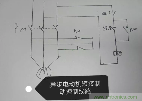 這種電路一般出現(xiàn)制動問題,大多都是由于頻繁啟停導(dǎo)致剎車系統(tǒng)問題,而所謂的剎車系統(tǒng)就一交流接觸器,結(jié)合電路圖不難看出,當(dāng)交流接觸器常閉觸點出現(xiàn)問題,剎車系統(tǒng)就出問題了。diangon.com在電源斷開時,電機在慣性作用下轉(zhuǎn)子不會立刻停下來,而且轉(zhuǎn)子存在剩磁,斷電時KM兩副常閉觸點將電動機定子繞組短接,而轉(zhuǎn)子的慣性旋轉(zhuǎn)磁場切割定子閉合的繞組后,電機內(nèi)部就形成一種反向制動力,從而達(dá)到制動目的。