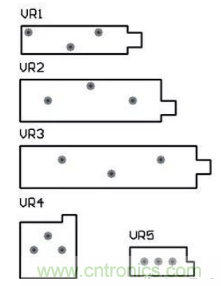 電位器的原理圖符號為“POT1”,“POT2”,對應(yīng)的電位器封裝為“VR-1”到“VR-5”。