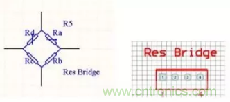 (a)電阻橋的原理圖符號及對應(yīng)的元器件封裝