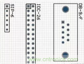 (c)整流橋的元器件封裝形式 圖F1-18 常用的整流橋 (7) 接插件。在電路板設(shè)計中,經(jīng)常用到的接插件有單排插座、雙排插座和一些專用的接口等,如圖F1-19所示。