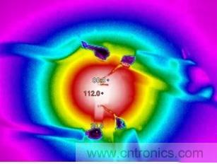 將10cmX10cm的二層PCB板的覆銅改為1OZ,重復上面實驗,測量的溫度如下圖所示。