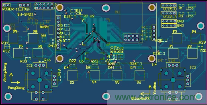 接下來將元件移到電路板外框內(nèi),并進(jìn)行正常的布線。