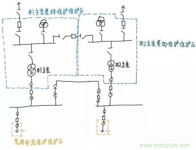 同理,對于后面的升壓變壓器,斷開變壓器兩側的斷路器可以實現切除變壓器而不切除其它元件,所以保護范圍就是變壓器兩側斷路器旁邊的電流互感器圍成的范圍。