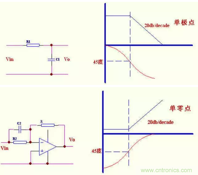 bode 圖可以簡單的判定電路的穩(wěn)定性,甚至可以確定電路的閉環(huán)響應(yīng),就向我下面的圖中表示的.零,極點(diǎn)說明了增益和相位的變化。