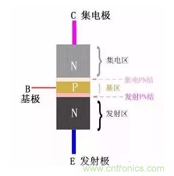 NPN型三極管結構示意圖