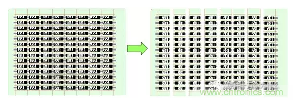 【制造方式】用折條機(jī)按照基板上原有的分割痕將基板折成條。
