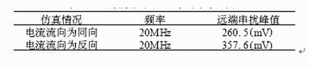 表1 電流流向不同時的串擾峰值
