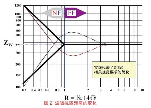 在靠近源的區(qū)域,電場(chǎng)和磁場(chǎng)的關(guān)系非常復(fù)雜;盡管既有電場(chǎng)又有磁場(chǎng),但該區(qū)域要么基本體現(xiàn)為電場(chǎng)要么基本體現(xiàn)為磁場(chǎng)。在遠(yuǎn)離源的區(qū)域,電場(chǎng)和磁場(chǎng)的關(guān)系變得穩(wěn)定了,即E/H=120π。電場(chǎng)和磁場(chǎng)的這種關(guān)系如圖2 所示。EMC從業(yè)者通常采用簡(jiǎn)化和近似的距離,即R=λ/2π,并認(rèn)為場(chǎng)在該處出現(xiàn)從近場(chǎng)到遠(yuǎn)場(chǎng)轉(zhuǎn)變。這個(gè)公式的前提假設(shè)是源結(jié)構(gòu)的尺寸小于半個(gè)波長(zhǎng)。天線的設(shè)計(jì)者們所尋求的更加精確的表達(dá)式可能會(huì)成為上述觀點(diǎn)的一個(gè)例外情況。[page]