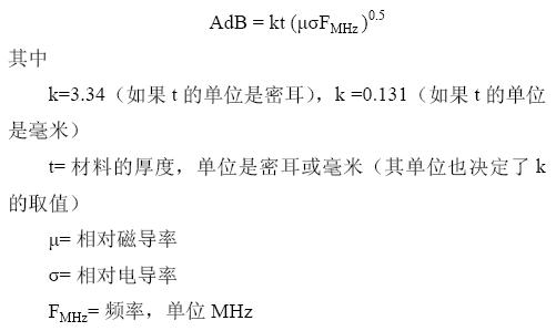 在更高的頻率上,殼體的屏蔽效能取決于吸收。吸收和入射到殼體上的波的種類無關(guān),它由如下所示的表達(dá)式給出:
