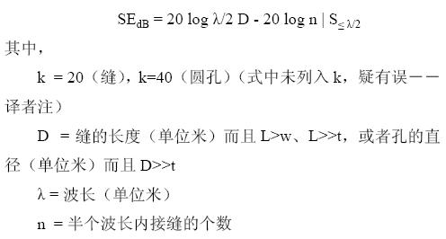 既然沒有考慮縫隙和其它不連續(xù)所帶來的影響,那么上述計(jì)算得到的這些高屏蔽效能的數(shù)值代表的就是屏蔽效能的最佳情況了。不幸的是,建造一個(gè)完全理想焊接的殼體是無法實(shí)現(xiàn)的。大多數(shù)殼體都要求開口以方便控制、面板的嵌入,通風(fēng)和觀察等。這些縫隙和不連續(xù)就會(huì)形成主要的屏蔽殼體的泄漏。