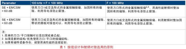 雖然屏蔽面板或外殼可以采用各種材料,但殼體的屏蔽效能主要取決于面板和外殼與殼體之間連接的密封情況,即接縫密封處的射頻搭接的質(zhì)量。任何獨(dú)立的面板或外殼,如果沒有充分接地或者和殼體充分搭接,就會(huì)成為一個(gè)發(fā)射天線。如果將面板單點(diǎn)接地會(huì)降低天線的效率并防止其成為天線,但這不會(huì)消除通過其它縫隙的泄漏。