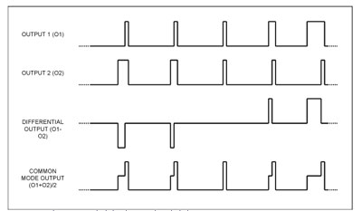 顯然,這一新技術雖具有一些優(yōu)點,但放大器輸出將不再對稱。圖2所示的信號波形(以MAX9704立體聲D類放大器為例)具有較高的共模分量。