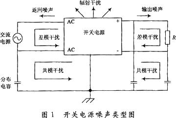 在開關(guān)電源中,主功率開關(guān)管在高電壓、大電流或以高頻開關(guān)方式工作下,開關(guān)電壓及開關(guān)電流的波形在阻性負(fù)載時近似為方波,其中含有豐富的高次諧波分量。由于電壓差可以產(chǎn)生電場、電流的流動可以產(chǎn)生磁場,以及豐富的諧波電壓電流的高頻部分在設(shè)備內(nèi)部產(chǎn)生電磁場,從而造成設(shè)備內(nèi)部工作的不穩(wěn)定,使設(shè)備的性能降低。同時,由于電源變壓器的漏電感及分布電容,以及主功率開關(guān)器件的工作狀態(tài)非理想,在高頻開或關(guān)時,常常產(chǎn)生高頻高壓的尖峰諧波振蕩,該諧波振蕩產(chǎn)生的高次諧波,通過開關(guān)管與散熱器問的分布電容傳人內(nèi)部電路或通過散熱器及變壓器向空間輻射。