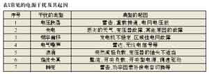 造成電源干擾復雜性的第二個原因是干擾表現的形式很多,從持續期很短的尖峰干擾直至電網完全失電,其中也包括了電壓的變化(如電壓跌落、浪涌和中斷)、頻率變化、波形失真(包括電壓和電流的)、持續噪聲或雜波,以及瞬變等。我們根據國內外的抗擾度測試的一系列標準和實際應用中常常出現的問題,總結了電源干擾的常見起因,如表1所示。
