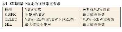 在大多數EMI測量中,視頻濾波器指定為關閉,或視頻濾波器指定為至少比測量的指定RBW高出三倍(參見表1)。