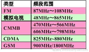 EMI主要通過PCB的走線、通孔和揚聲器的連線向外輻射,較大能量的EMI輻射需要一個“高效率”的天線,對不同的頻率,一個有效的天線長度是該頻率波長的四分之一(λ/4),小于這個長度,就不能形成有效的對外輻射。對30MHz的頻率,采用一般的FR4的PCB板,天線長度需要大于114.1cm才能形成有效的輻射。所以在手機上采用D類放大器時,在放大器輸出的PCB走線和揚聲器連線上的方波邊沿變化是EMI的最重要來源。特別是手機應(yīng)用中所關(guān)心的一些頻段,如下表所示:基本都在100MHz以上,因此我們需要特別地關(guān)注由方波邊沿變化所引起的EMI輻射。