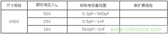 C0G系列容量范圍