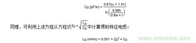 舉例說(shuō)明,假設(shè)PCB厚度為0.0625in (h = 62.5 mil),1盎司覆銅引線(t = 1.35 mil),寬度為0.01in (w = 10 mil),采用FR-4電路板。注意,F(xiàn)R-4的εr典型值為4.35法拉/米(F/m),但范圍可從4.0F/m至4.7F/m。本例計(jì)算得到的特征值為Z0 = 134Ω,C0 = 1.04pF/in,L0 = 18.7nH/in。