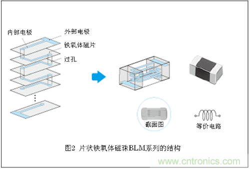 片狀鐵氧體磁珠通過疊層而形成了電感器的構(gòu)造