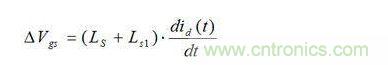 在諧振條件(ωL=1/ωC)下,柵極和源極電壓中生成的震蕩電壓遠(yuǎn)大于驅(qū)動(dòng)電壓。因諧振變化而產(chǎn)生的電壓振蕩與品質(zhì)因數(shù)成正比,Q(=ωL/R=1/ωCR)。當(dāng)MOSFET關(guān)閉時(shí),漏極寄生電感(LD+Ld1)、柵極-漏極電容Cgd和柵極引線電感Lg1網(wǎng)絡(luò)造成柵極振蕩電壓。如果柵極電阻(RG-ext.+Rg_int.)極小,則Q變大。另外,LS兩端的壓降和Ls1源極雜散電感在柵極-源極電壓中產(chǎn)生振蕩,可用表達(dá)式(1)表示。寄生振蕩可能造成柵源極擊穿、不良EMI、較大開(kāi)關(guān)損耗、柵極控制失效,甚至可能造成MOSFET故障。