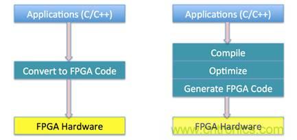 圖4 傳統FPGA開發流程與C-to-FPGA開發流程