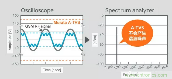 因此,不會產生諧波噪聲的村田的A-TVS(LXES**A系列)可以說更加適用于RF天線的ESD保護方案。