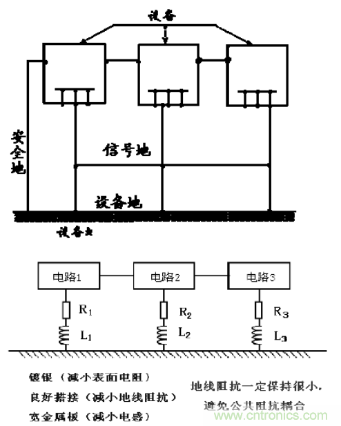 (3)噪聲和干擾抑制:對內部噪聲和外部干擾的控制需要設備和系統上的許多點與地相連,從而為干擾信號提供最低阻抗的通道。