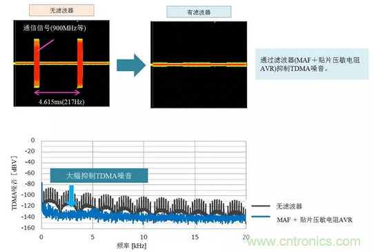通過同時使用MAF與貼片壓敏電阻對于抑制TDMA噪音擁有極佳的效果