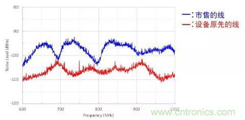圖7為結(jié)果。此時,用原先的線時噪聲較低,最大的差為10dB左右。因此可見選擇適合的線也對噪聲對策十分關(guān)鍵。