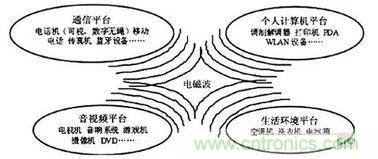 一些過去不具備聯網能力的電子設備,比如:電視、電冰箱、洗衣機、衛星機頂盒等家用設備和電器,成為家庭網絡的新成員,并接入網絡,使網絡配置更加復雜,設備間的電磁兼容性也變得更復雜(見圖1)。另外,家庭網絡將與現有通信網,供電網等共同形成新的電磁環境,不同網絡間的相互影響因素也更紛繁(見圖2)。
