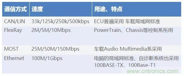 汽車內部根據用途使用各種不同的接口標準。