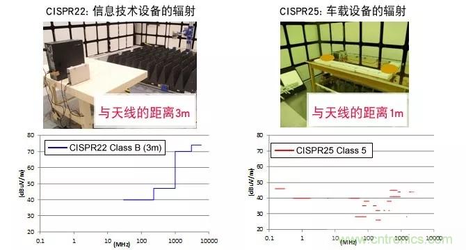 與民用產品相比,車載設備與天線的距離較短且具有更加嚴格的限度值。