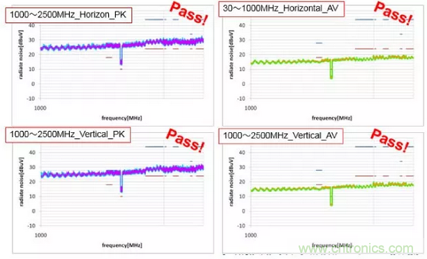 通過輻射噪聲測定確認了共模扼流圈的降噪效果。
