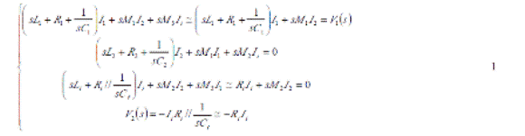 這里ω 01與ω 02(ω02》ω01)分別是由發(fā)射線圈 LC諧振回路與待測 LC諧振回路的諧振角頻率,實際應用時 Q2在100左右,而 Q1小于1。此時式3可簡化為: