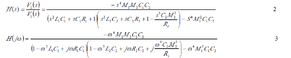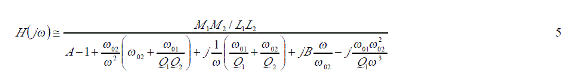 這里V1是發(fā)射信號的電壓, V2是接受信號的電壓,則測試回路的傳輸函數(shù)是由下式所決定的。