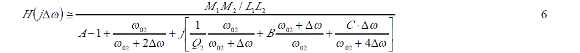 如果實際工作角頻率與待測諧振角頻率間的角頻率差 Δω控制在遠小于 ω02,這樣可以無視 Δω的高次項,式5可以作進一步簡化。