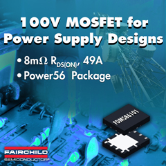 FDMS86101是采用5mm x 6mm MLP Power56 封裝的100V MOSFET器件,使用了飛兆半導體先進的PowerTrench 工藝技術,能夠最大限度地減小導通阻抗,同時保持優良的開關性能和穩健性。相比柵級電荷相同的現有解決方案,這一專有工藝技術提供了業界最低的RDS (ON) (8 mΩ),使FDMS86101得以減小導通損耗,而不會受到較高柵級電荷的影響。以太網、刀片服務器和電信應用正逐漸從12V轉向48V電源,對于優化開關效率的需求變得越來越重要。