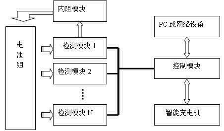 如圖3-1所示,裝置由控制模塊、檢測模塊、內阻模塊、相關軟件和輔助部件構成,一個控制模塊可接入多個檢測模塊,完成對不同只數和不同電壓規格的蓄電池組的監測管理,可同時管理多組蓄電池。