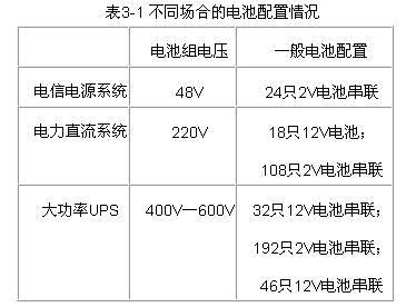 電池組是由多個單電池串聯構成的,一般的配置情況如表3-1所示。