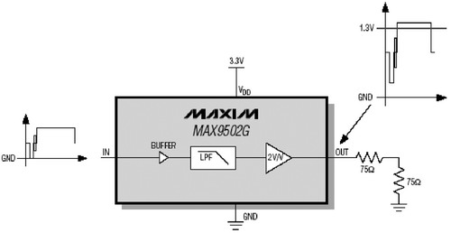 圖3MAX95091.8V應用電路處理50%平場信號,大大降低了功耗