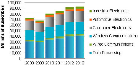 圖:2008年-2013年中國半導(dǎo)體市場預(yù)測