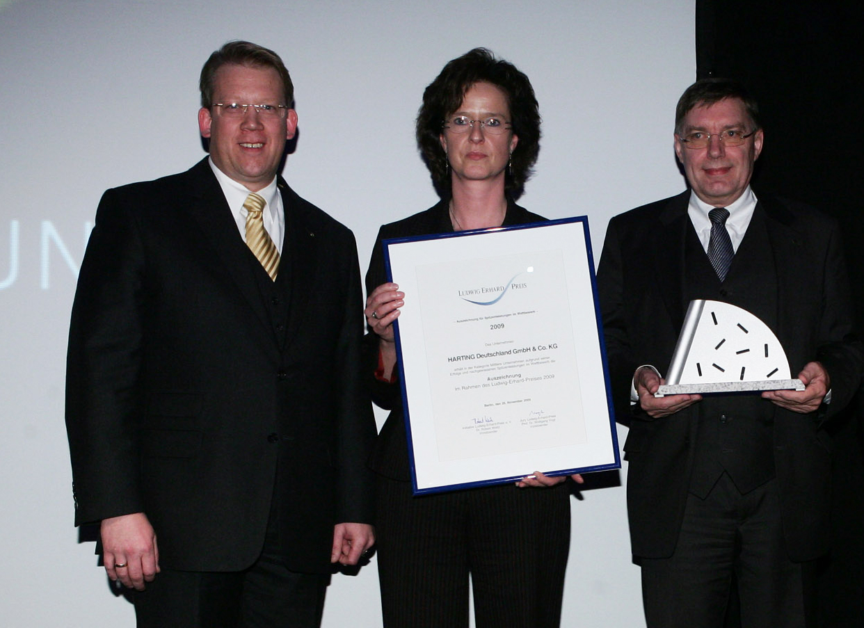 在10月份通過最后一輪評選后,獲獎對于HARTING可算是意想不到的事情,因為這他們首次參加該獎項評選。Ludwig Erhard獎卓越計劃目標是鼓勵使用一體化管理系統的公司。這獎會頒發給在可持續性有杰出表現與競爭力方面均有優越表現的公司。來自不同行業的評估獨立小組于現場對公司進行考察,并根據面談結果作詳細的評估報告。