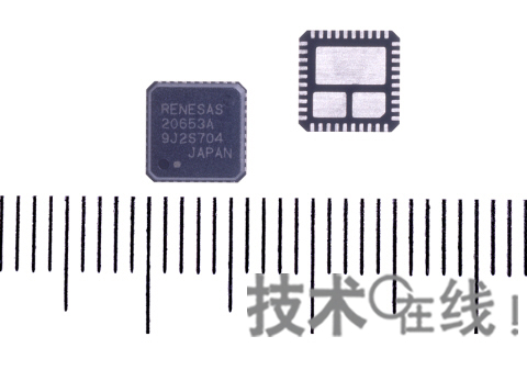 R2J20653ANP將高端(High Side)MOSFET、低端(Low Side)MOSFET以及驅(qū)動(dòng)這兩種MOSFET的驅(qū)動(dòng)IC集成在了一個(gè)封裝內(nèi)。均為瑞薩制造。低端MOSFET內(nèi)置有肖特基勢(shì)壘二極管(Schottky Barrier Diode),降低了開關(guān)時(shí)的損耗。另外,將驅(qū)動(dòng)IC面向兩個(gè)MOSFET的開關(guān)控制進(jìn)行了優(yōu)化。由此,在輸入電壓為20V、輸出電壓為1.1V(頻率為300kHz)的條件下,實(shí)現(xiàn)了91%的電力轉(zhuǎn)換效率。