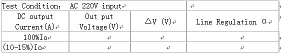 1、測(cè)試條件:交流輸入電壓220V,輸出滿載(對(duì)于多路輸出,各路均滿載)