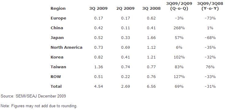 - 2009年第三季度全球半導體制造設備出貨額達到45.4億美元