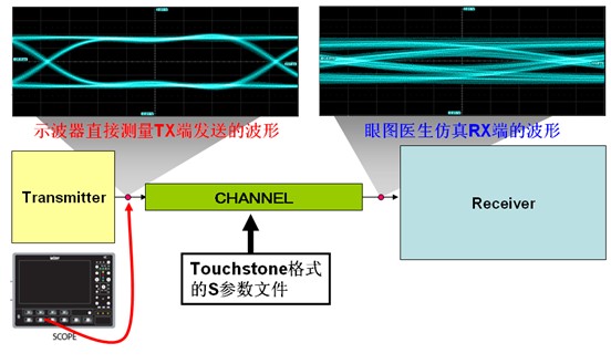 眼圖醫生(Eye Doctor)是力科于2006年推出的用于高速串行數字電路設計的強大工具,集成在高帶寬示波器中,包括了虛擬探測(virtual probing)與接收端均衡(receiver equalization)兩部分,主要用于通訊背板設計、高速串行信號一致性測試、高速SERDES芯片均衡器的優化與設計等等。在2009年2月,力科發布了新一代的眼圖醫生II,提供了更強大的分析能力與良好人機界面。如下圖1所示,利用Eye Doctor的信道仿真功能,可以用示波器測量到的TX端發送的波形,在Eye Doctor II中導入信道的S參數模型文件,計算出通過信道后RX端的信號波形、眼圖與抖動,其功能類似于EDA的SI仿真工具。
